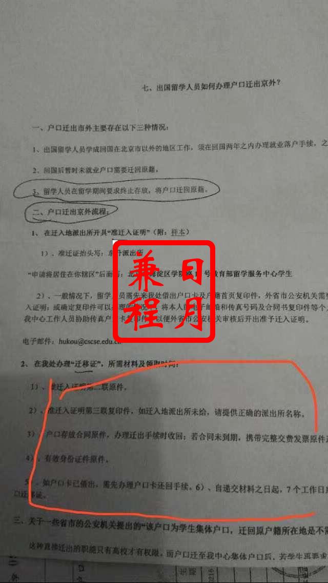 出国留学人员办理户口迁出北京市外