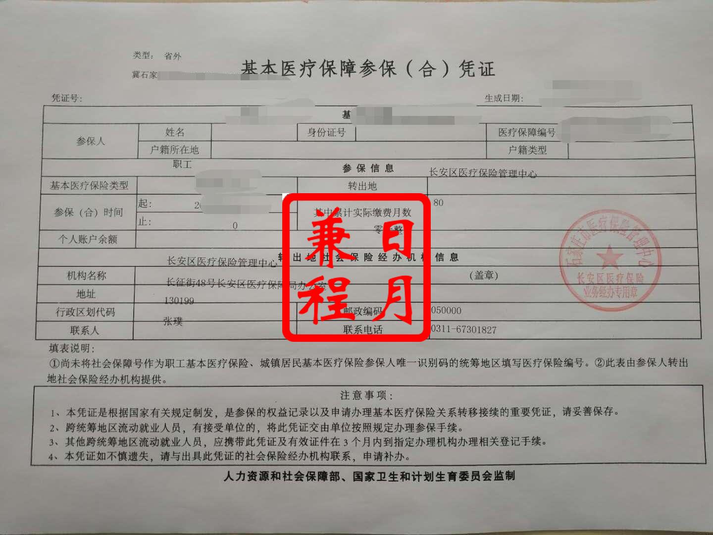 石家庄社保转移 养老保险和医疗保险转出凭证打印