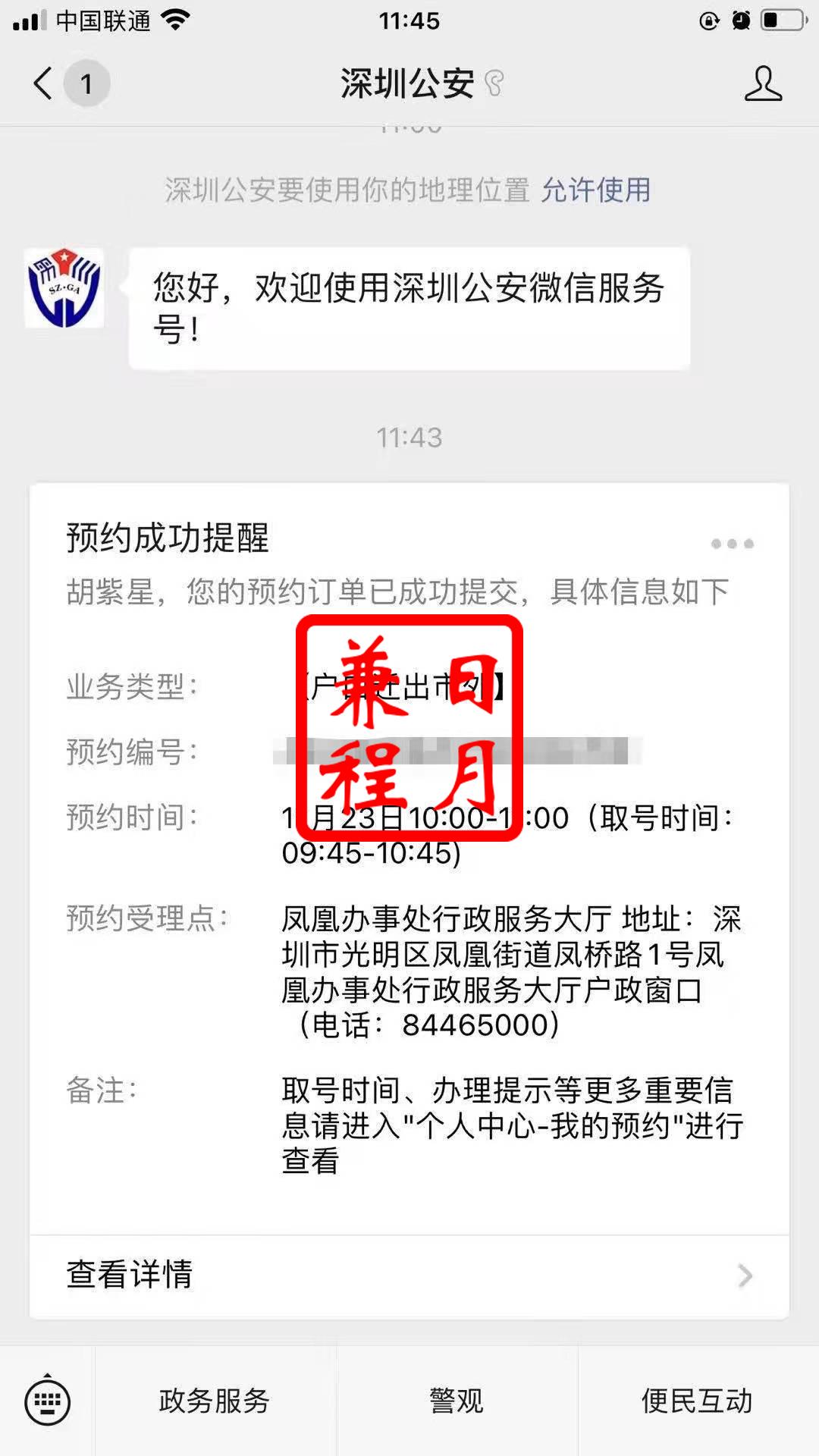 深圳户口迁出光明区南凤派出所领取迁移证代办案例