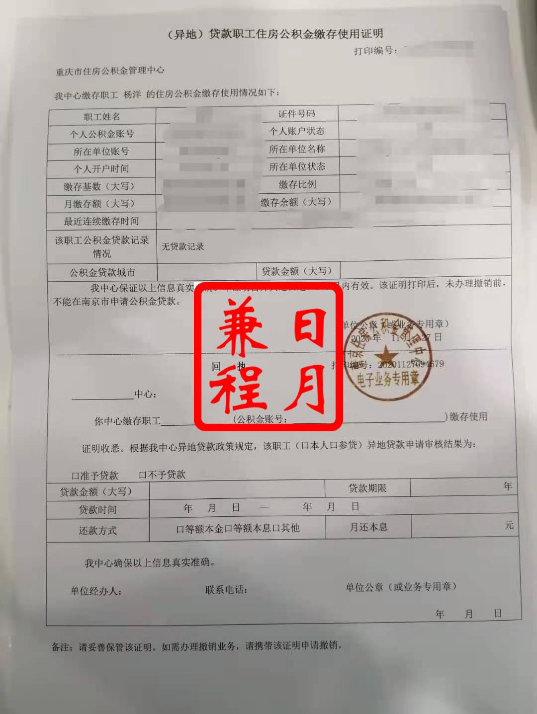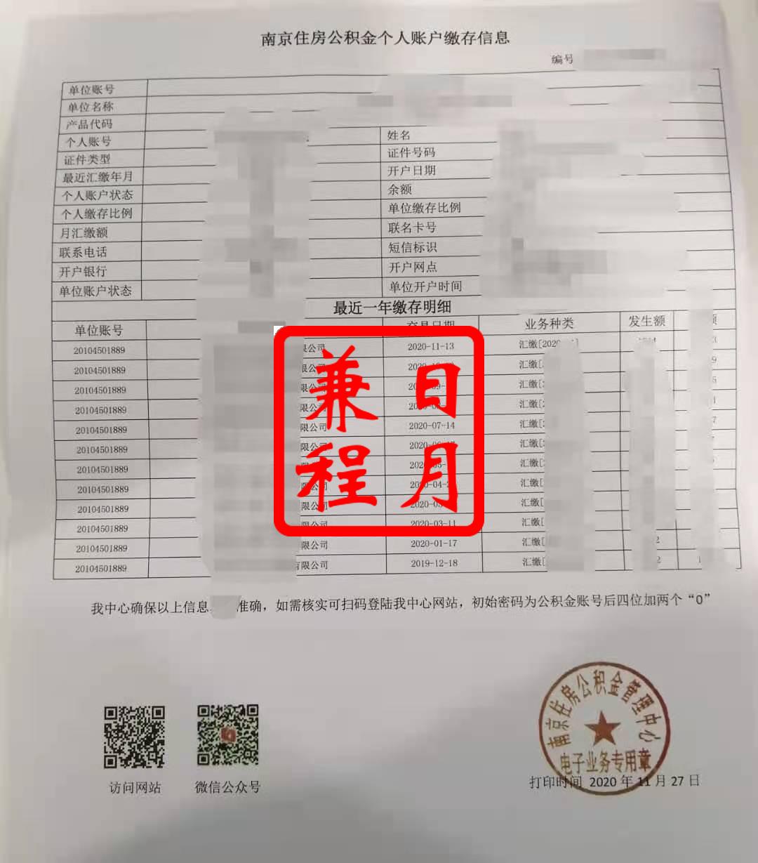 打印南京市公积金缴存证明和缴存明细单代办服务案例