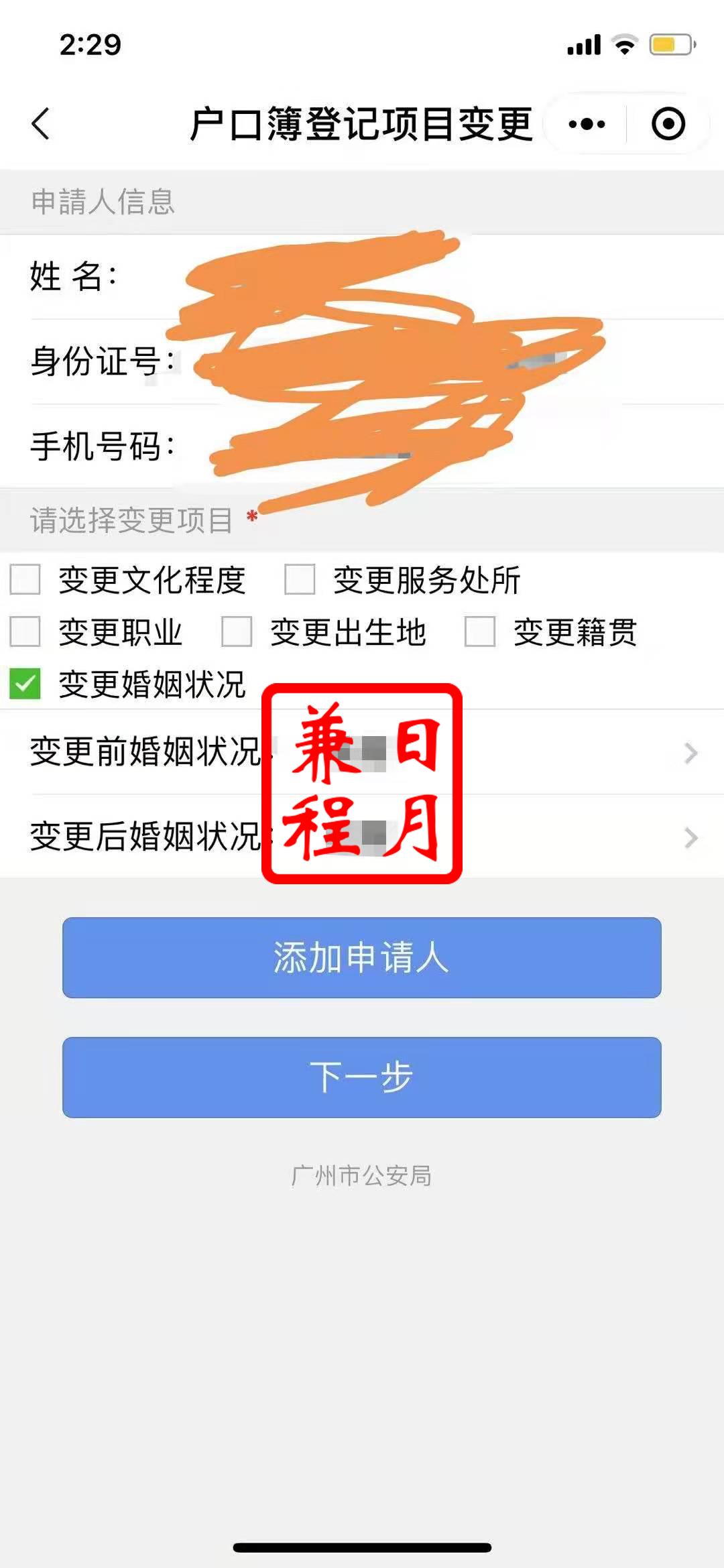 广州集体户户口变更婚姻状态办理案例