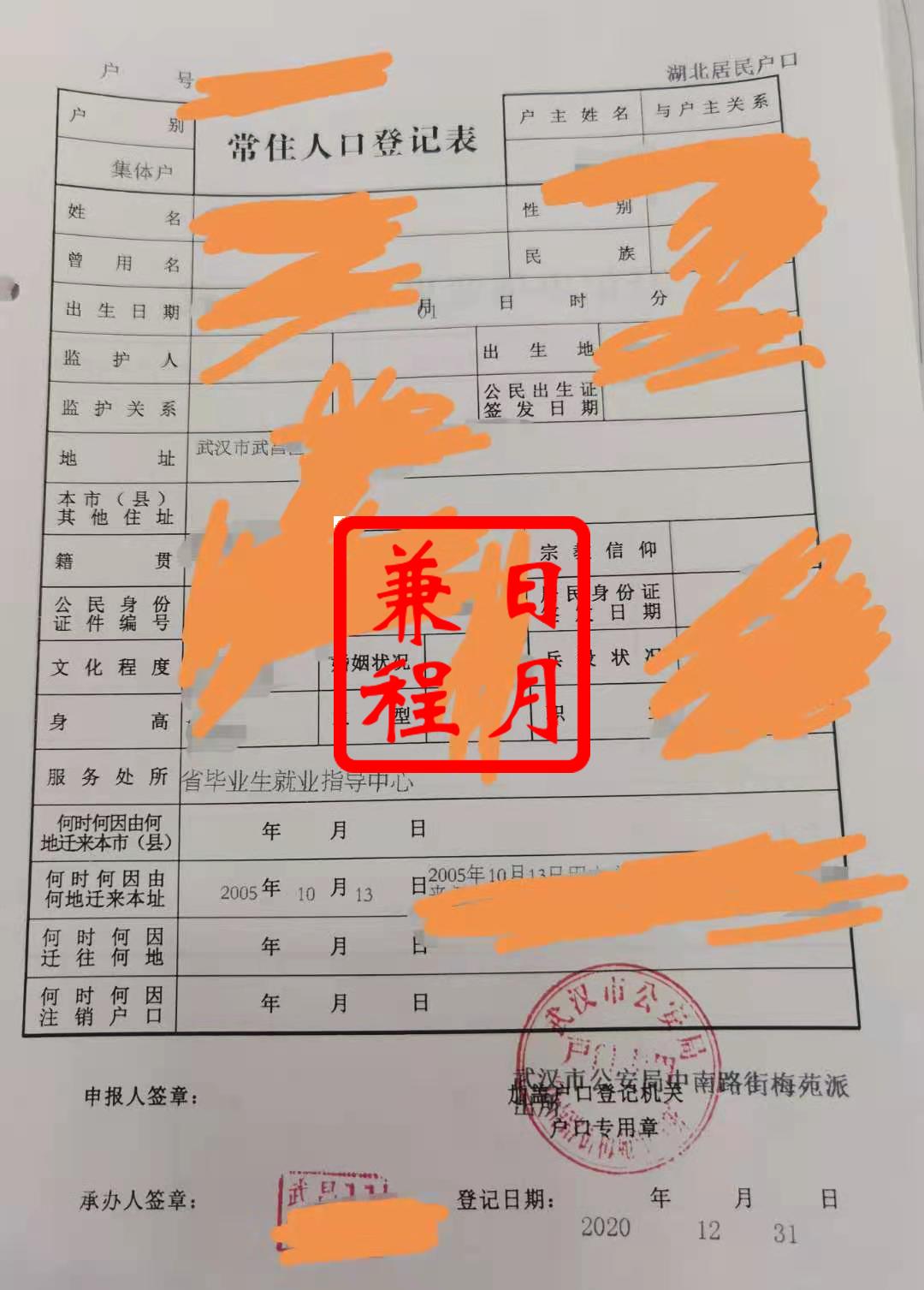 武汉武昌区中南路街梅苑派出所借户口页户口首页代办