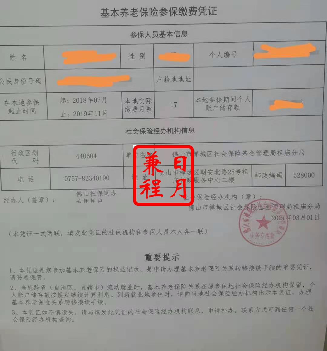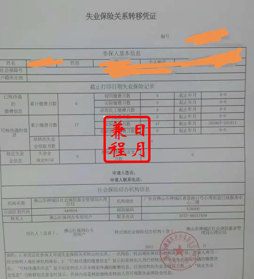 佛山禅城南庄镇政务服务中心打印养老保险医疗保险失业保险转出参保凭证代办案例