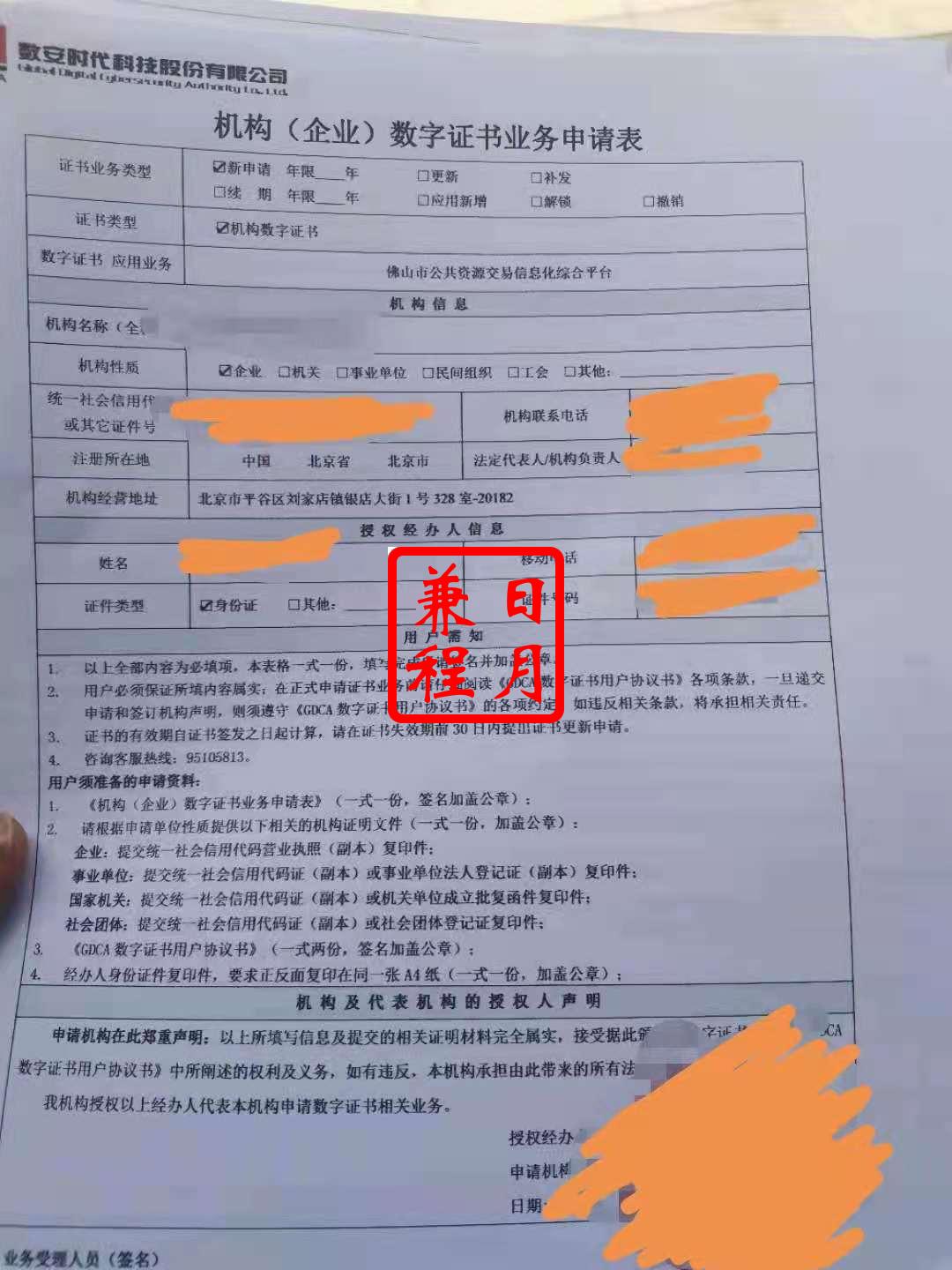 佛山市公共资源交易信息化综合平台CA数字证书代办案例