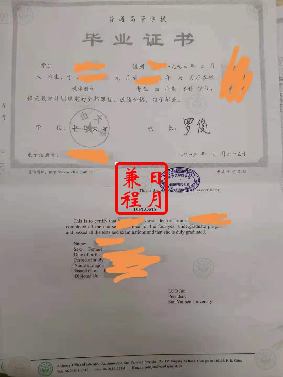 中山大学2016届之前的毕业生人工窗口申请毕业证明学位证明代办