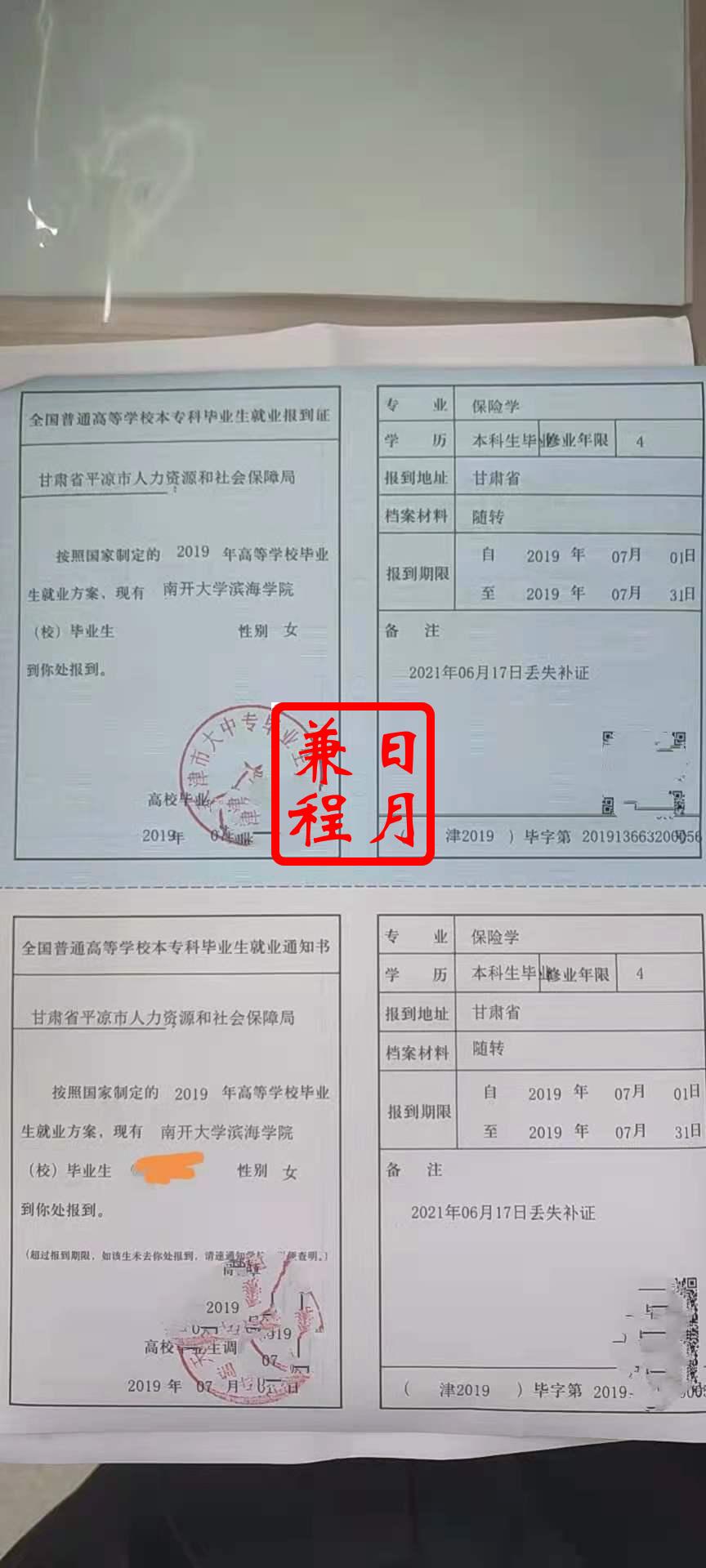 南开大学滨海学院毕业生就业报到证补办代办案例