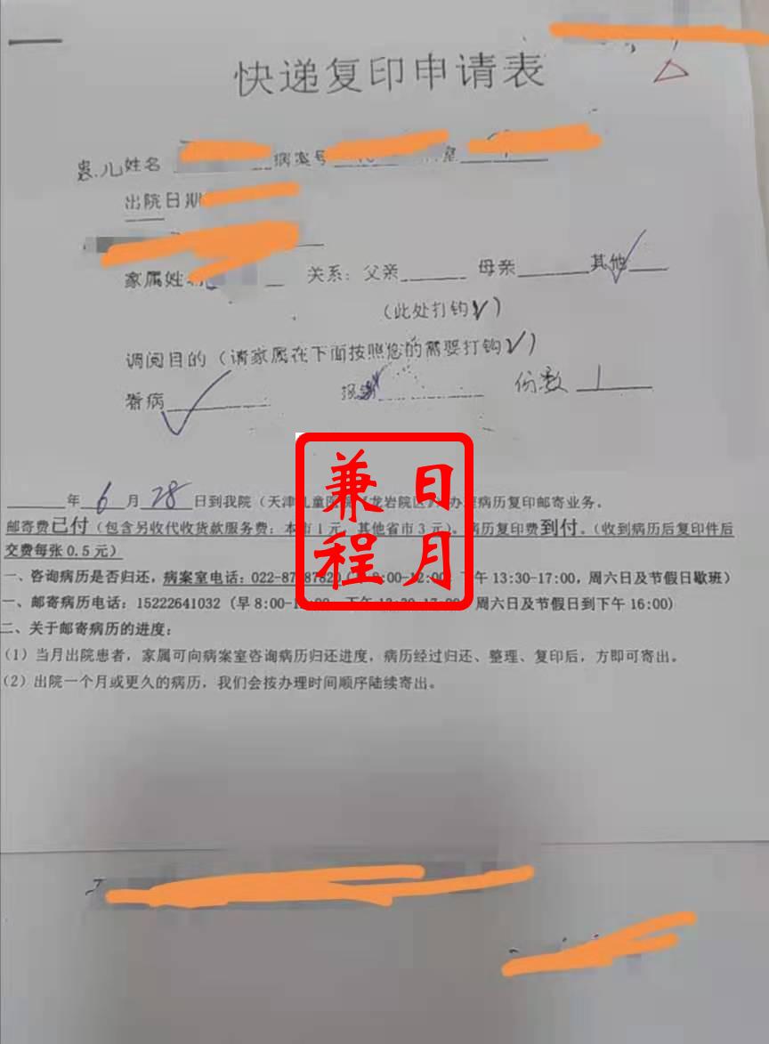 天津儿童医院住院病案室复印病历代办案例