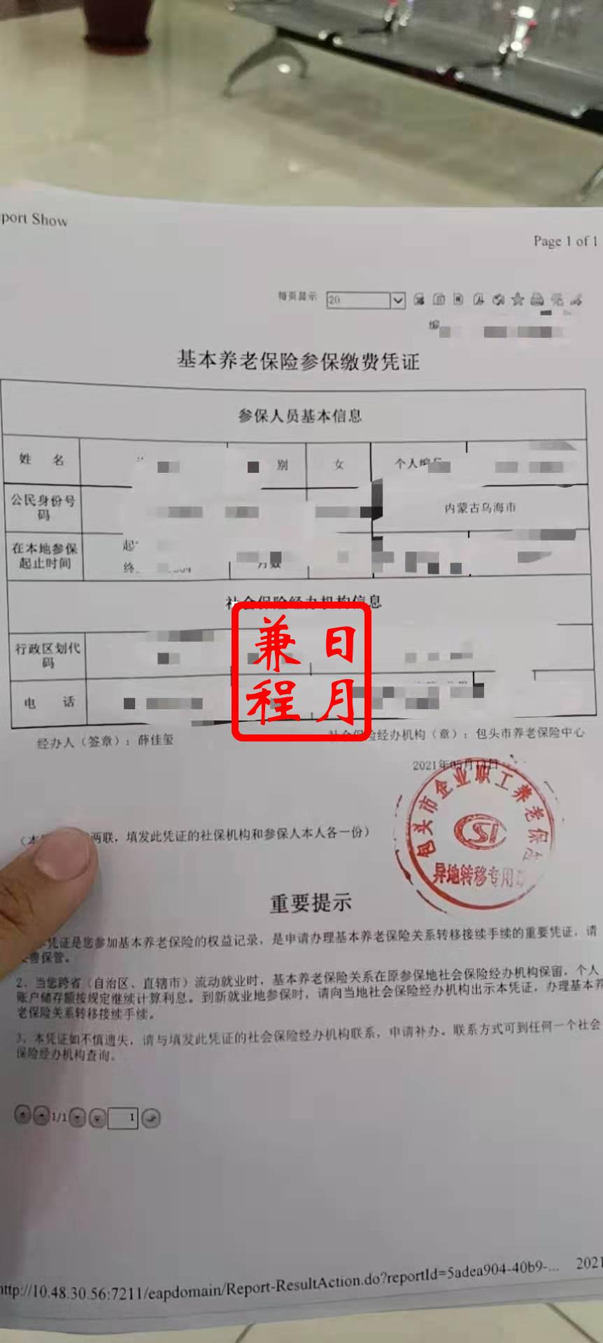 包头养老保险和医疗保险转出参保凭证打印代办案例