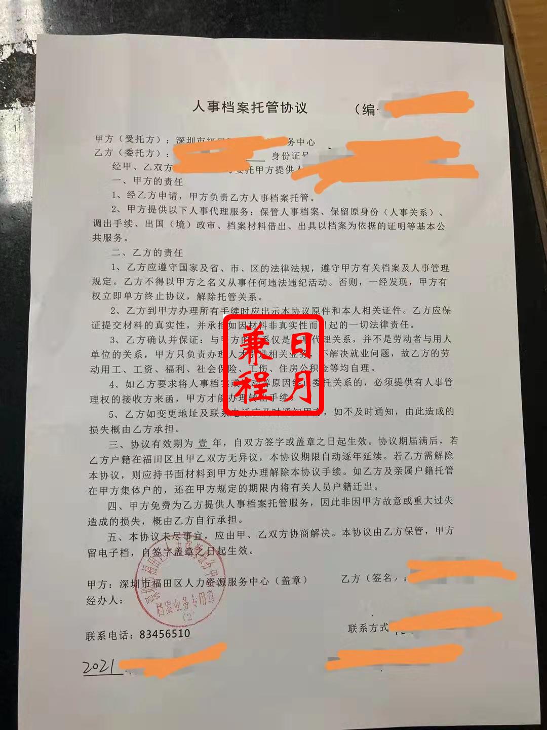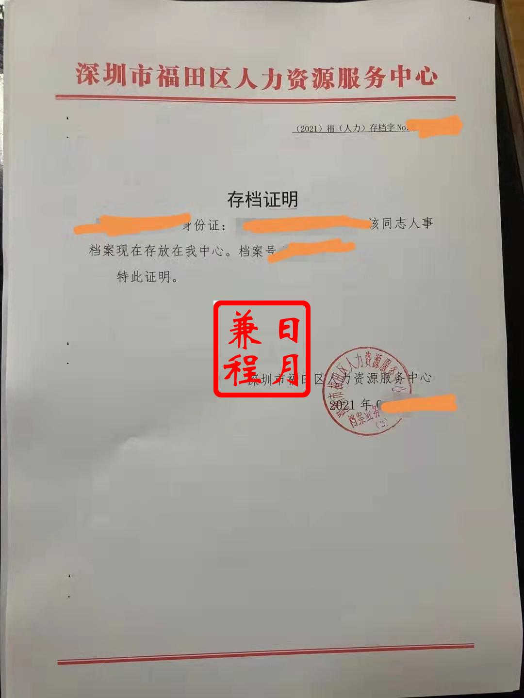 深圳福田区人力资源服务中心档案存档证明代办案例