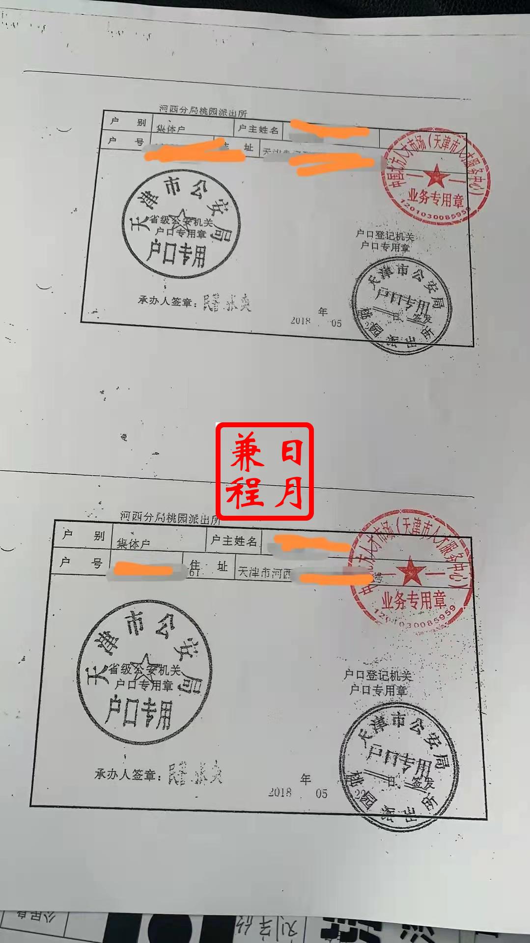 中国北方人才市场(天津市人才服务中心)集体户借户主页盖章复印件