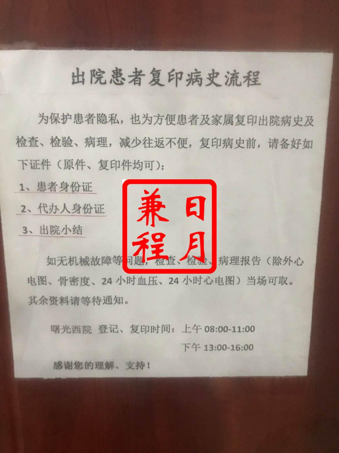 上海中医药大学附属曙光医院复印病历案例
