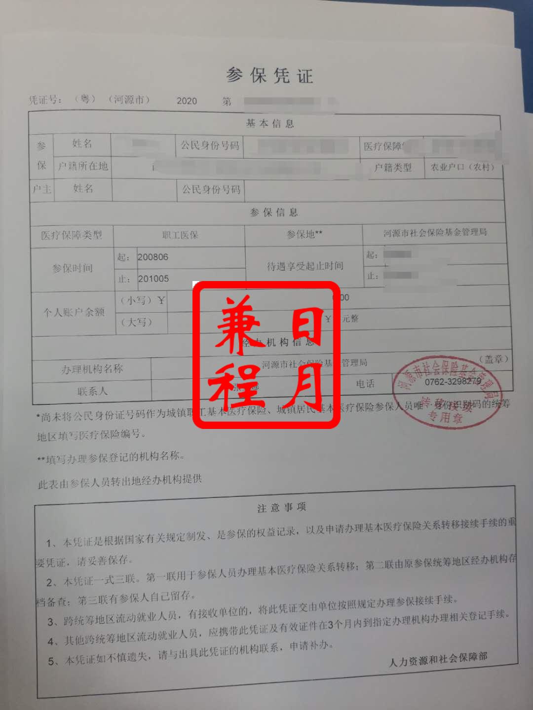河源社保转移打印养老保险转出凭证和医疗保险转出凭证代办案例