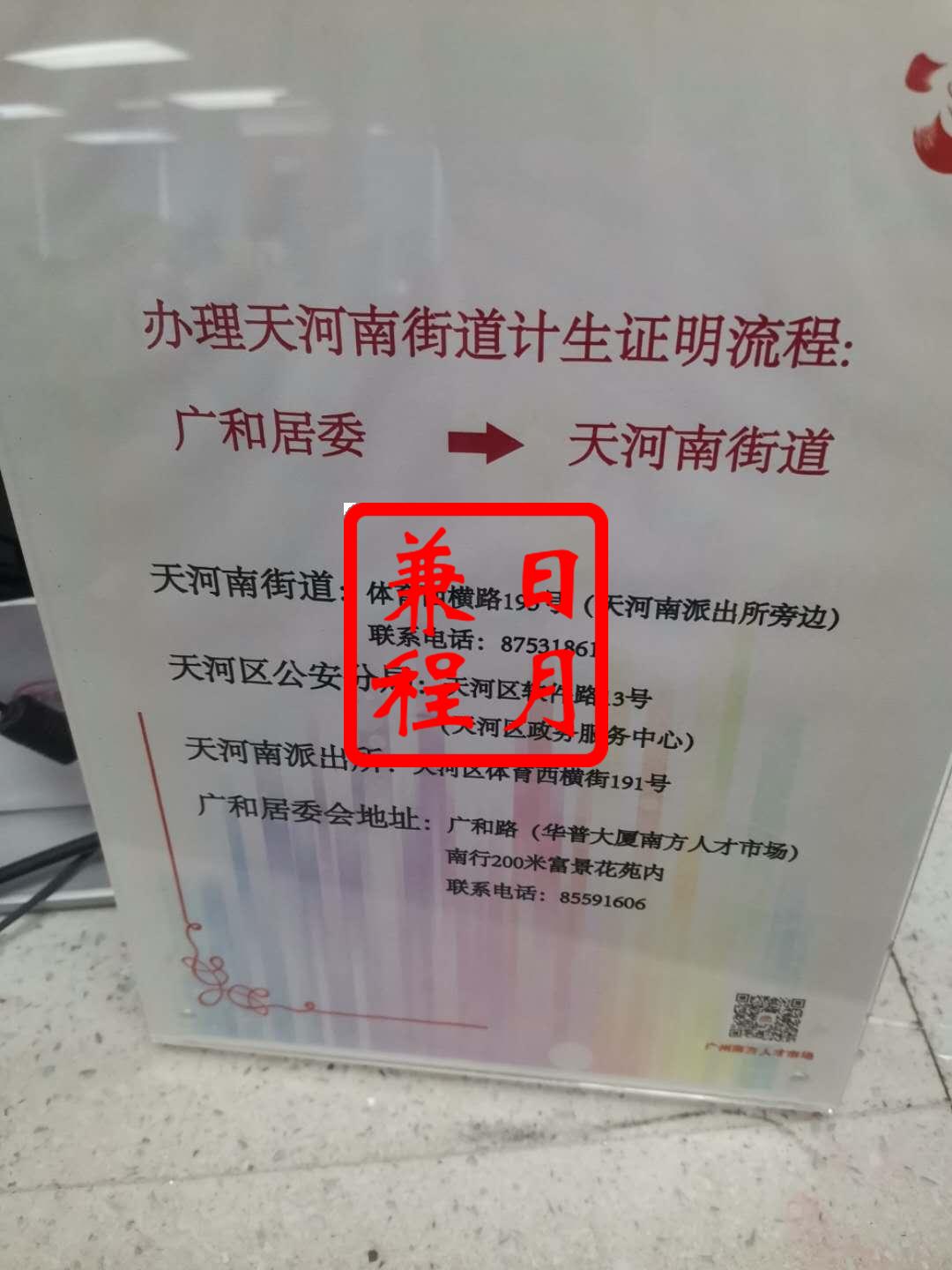 广州天河区计划生育证明代办案例