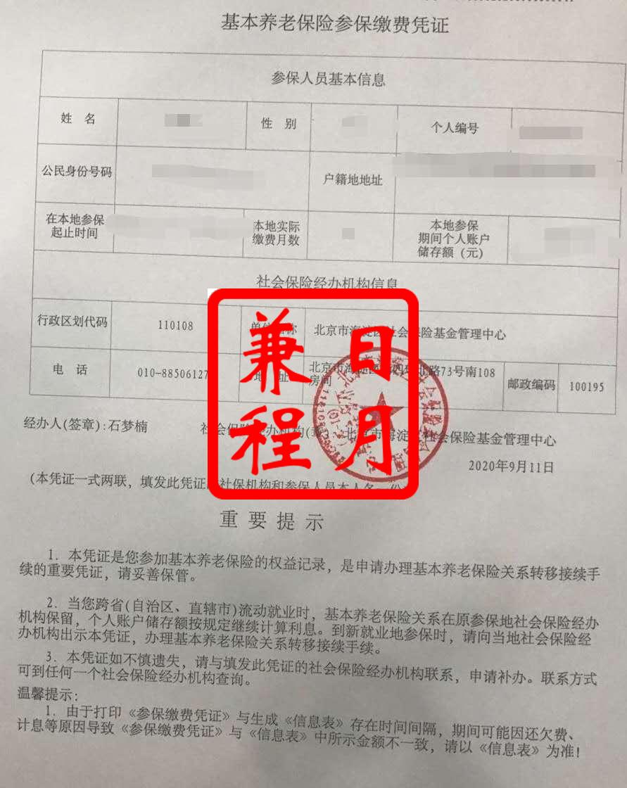 北京海淀区社保转移养老和医保转出凭证代办案例