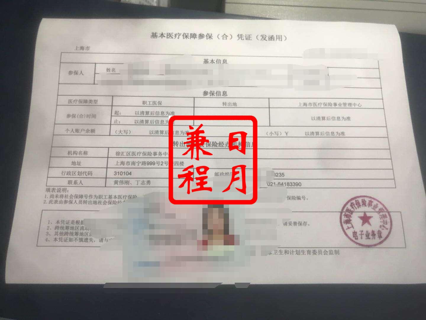 上海社保转移打印养老保险和医疗保险转出凭证案例