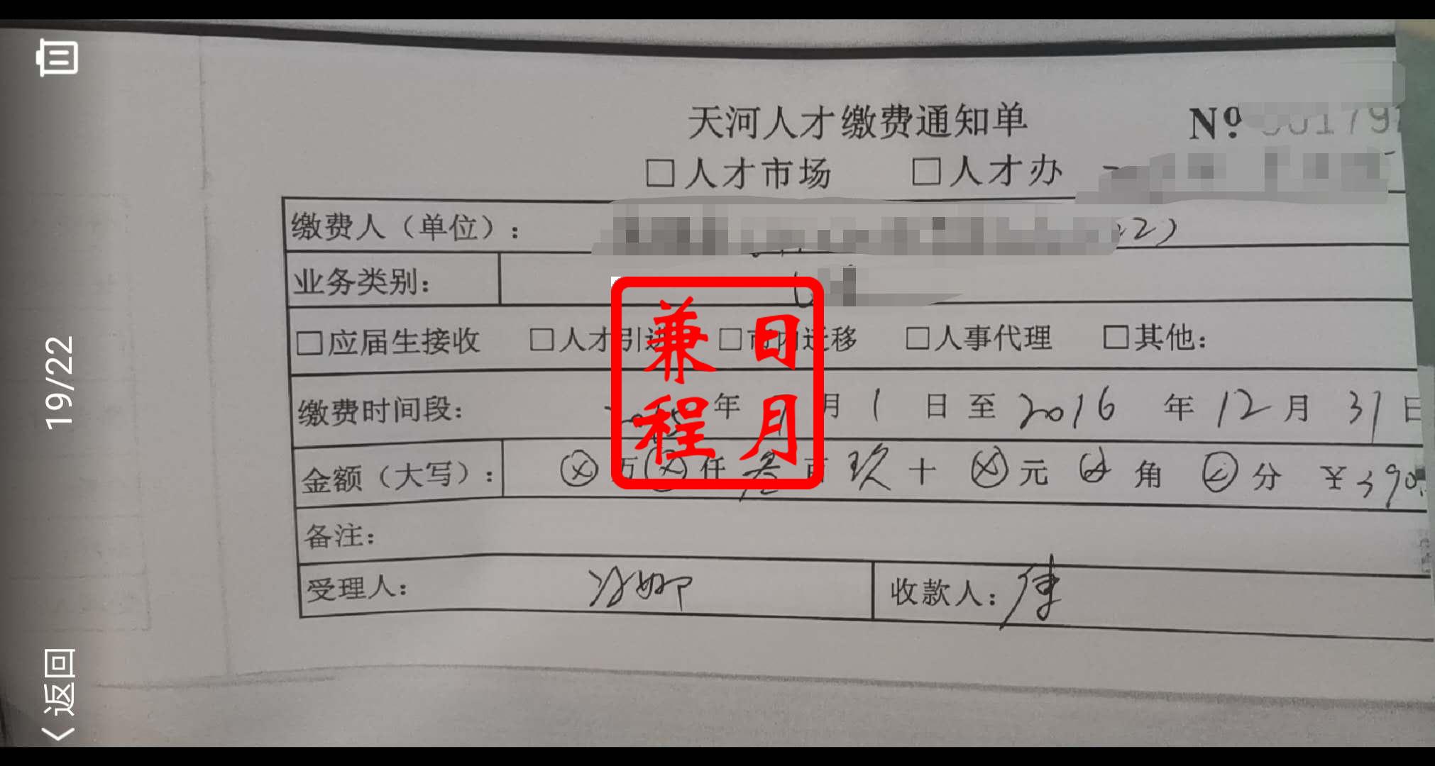 广州市天河区人才服务管理办公室代办缴费案例